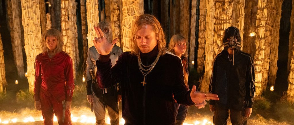 28 Years Later: The Bone Temple is the second film in a newly planned trilogy with Nia DaCosta taking over the director reins from Danny Boyle and bringing a more cinematic feel to the story as opposed to Boyle’s more down in the dirt approach of its predecessor. Despite jumping straight into things from where the first film ended, The Bone Temple gets off to a slow start. I was excited to see what was in store for Spike when he left his secluded island community to explore the mainland, but it’s more of the same. Aside from Dr. Kelson’s terrifying memento mori titular bone temple, it’s much of the same wooded forests with the occasional homestead. We do see how Sir Jimmy leads his gang of psychopathic killers. They all are forced to abandon their old names and are renamed Jimmy, becoming his fingers as they dole out “charity” to any humans they come across. “Charity” is just their fancy word for torture, and boy are they good at it. Spike is terrified by their actions, and he doesn’t dare cross them but he can only tag along with them for so long before he’s going to have to participate. Alfie Williams isn’t as prevalent as he was in 28 Years Later as the main focus shifts between Sir Jimmy and Dr. Kelson, which is a bit of a shame since he was so great in the first film.